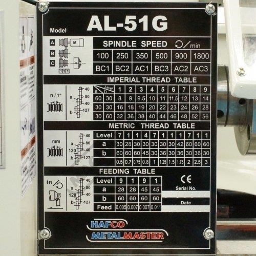 HAFCO-METALMASTER Bench Lathe AL-51G Ø230 x 500mm Turning Capacity - Ø20mm Spindle Bore 6 Speeds 100 ~ 1800rpm