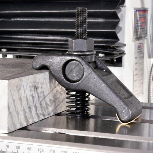 The rugged forged steel pivot clamp offers instant height adjustment without the need for blocks or shims. Its all-in-one construction enables quick setup and eliminates the risk of losing clamp pieces. The clamp can be turned 90° in either direction for loading clearance, and the removable brass heel protects the machine table.