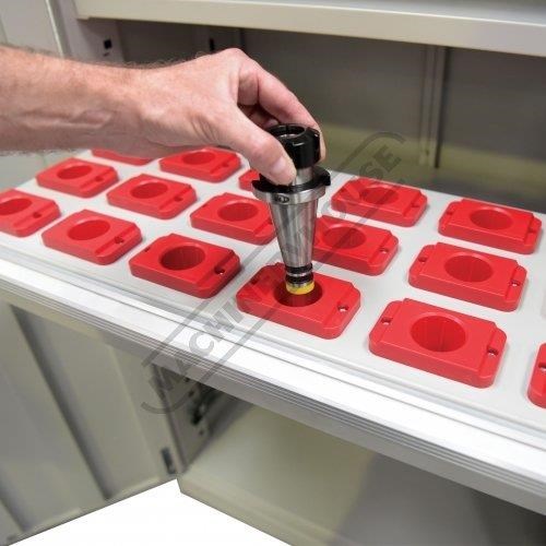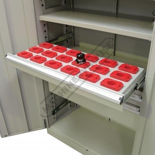 The SCD-40H tooling drawers equipped with 18 tool holders. Designed for storing NT40 or BT40 tooling
