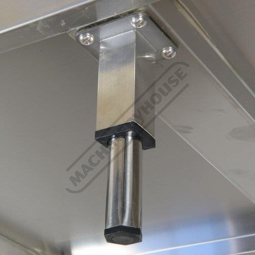 The new improved SSB-20 stainless bench includes a benchtop is manufactured from 1.1mm food grade 304 stainless steel and is supported with a solid 15mm MDF board with stainless cross member supports making it ridged and helping improve the overall sturdiness. Being an island style bench which makes it easy to be able to work from either side.