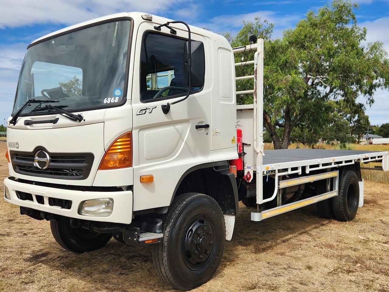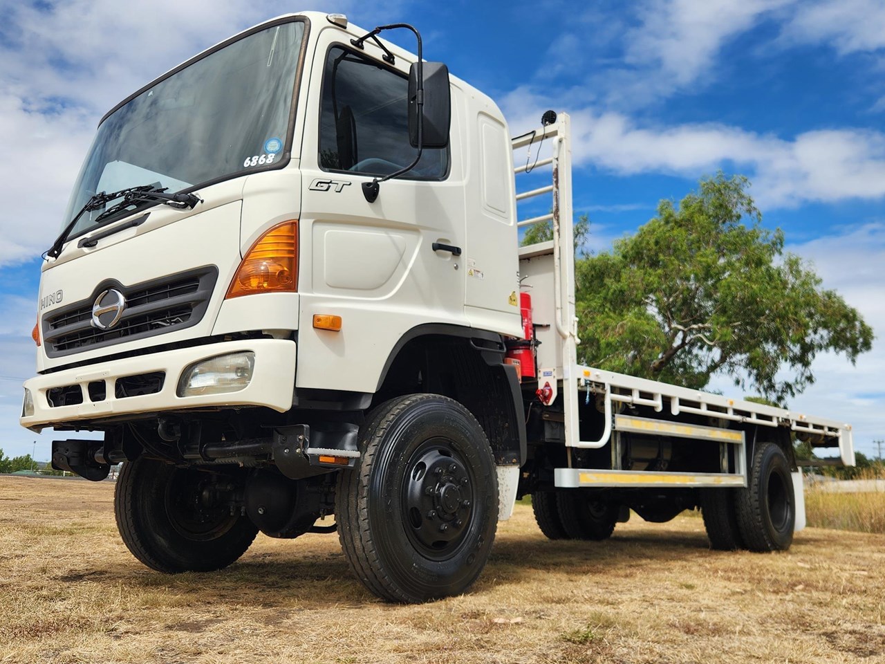10/2004 Hino GT1322 500 Series 4x4 Traytop. Ex Govt Contract with only 63,145 Kms ( We also have another similar truck in Tipper with Crane & also a Crewcab ) Hino 220HP 7.5 Litre 6 Cylinder Intercooled Turbo Diesel,6 Speed Transmission with High/Low Range 4WD Air Conditioning,3 Seats with Drivers Suspension Seat,Air Park Brake,2 x Fire Extinguishers Pintal Hitch Towbar with Air Trailer Brakes and In Cab Controls Reversing Camera,Revolving Light & Work Lights Fitted with 20' Steel Tray with Checkerplate Steel Floor,Underbody Toolbox,Slide-Out Steps & Winch Straps Tray L-6180 ( 20.2 Feet ) W-2450 GVM 13000. GCM 21000. Wheelbase 4650. Price includes GST & Tax Invoice Competitive finance available Delivery arranged to any state Independent inspections welcome & recommended Other 4x4 Trucks & Fire Trucks in stock including Isuzu FTS800,FTS750,FTS700,FSS550,FSS500,NPS300,NLS45/150 Hino GT & FT 500 Series Mitsubishi Fuso Canter Iveco Daily 55S-180 Freightliner FL80 4x4 Crew Tabletop,Cab/Chassis,Tipper,Cranetruck,Service Body,Beavertail,EWP Curtainside,Refrigerated Pantech,Prime Mover,Water Trucks & Fire Trucks Single Cab & Dualcab Ex Govt,Council,Forestry,National Parks,SES,Fire & Rescue Service,Rural Fire Service,Coles,Woolworths & Major Fleets Established 1991 with over 200 Trucks in stock and over 7000 Trucks Sold