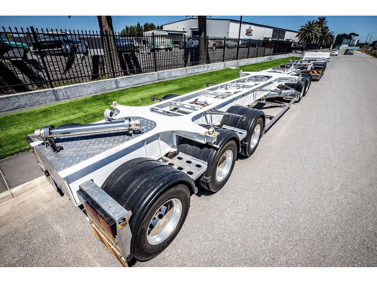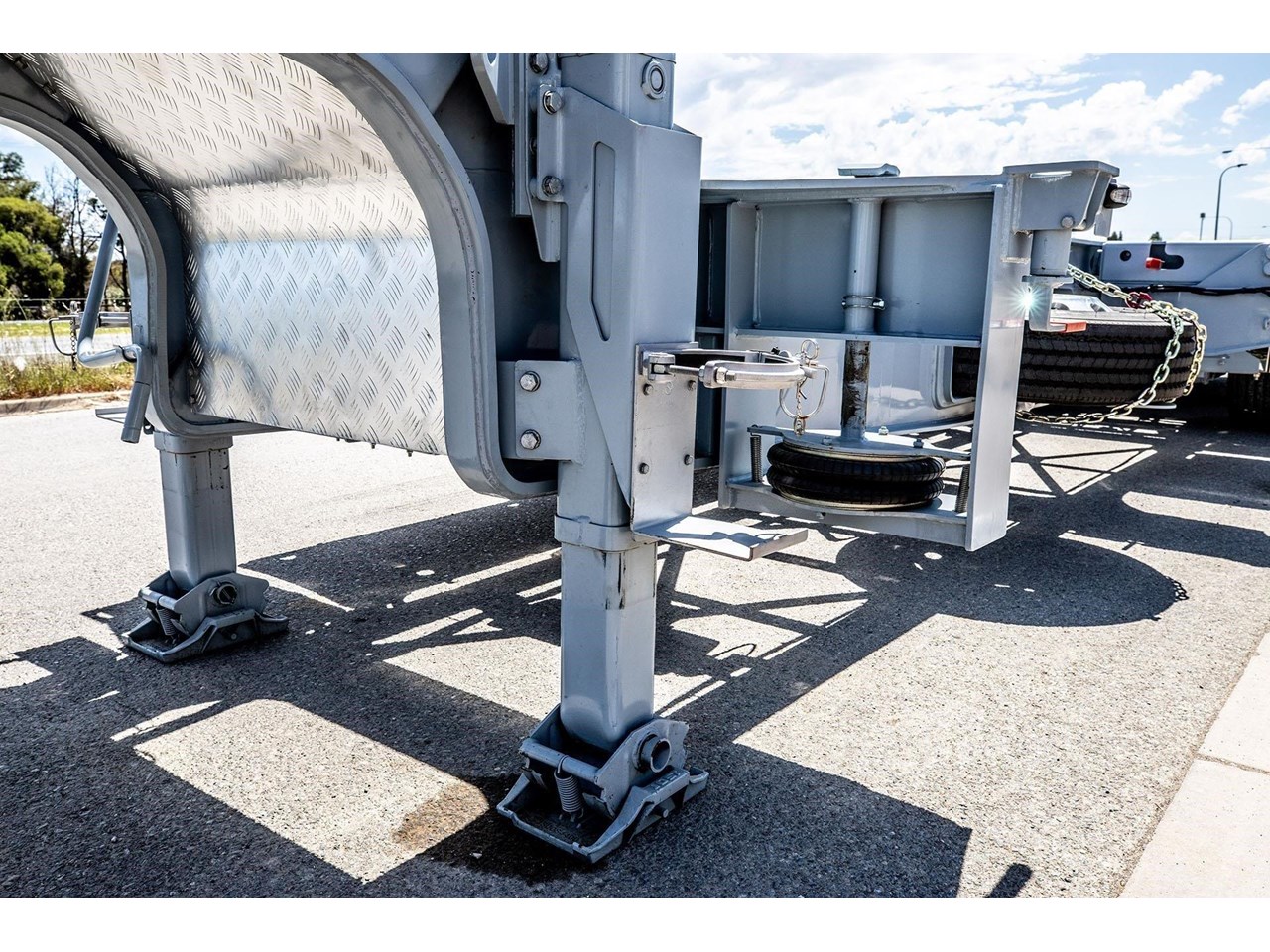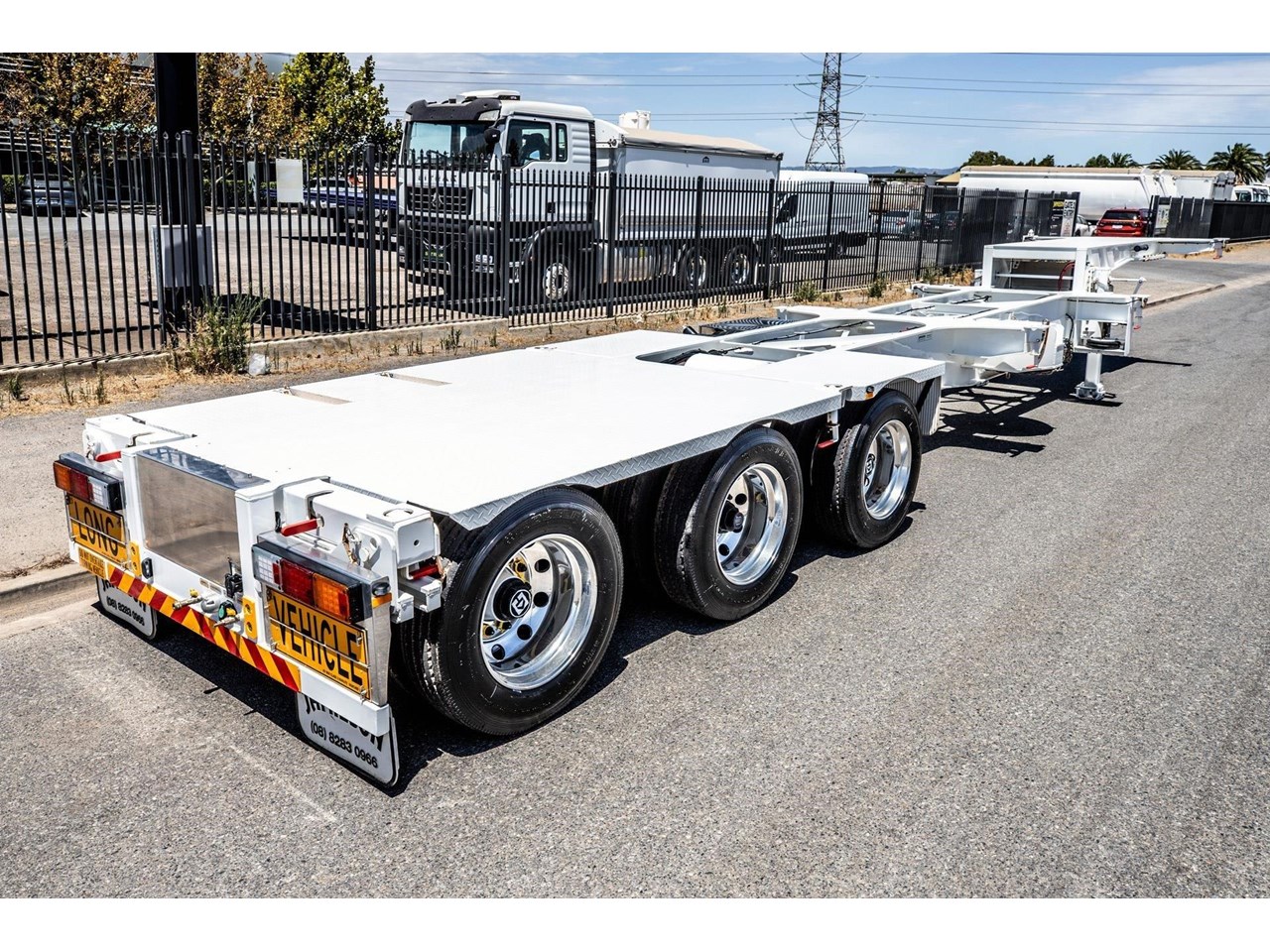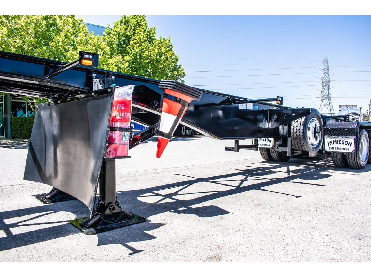 Supporting both safety and operational efficiency, standard features across the Jamieson Skeletal Trailer range typically include multi-way twistlock container pins for handling various ISO/container lengths, EBS braking systems, DG wiring, and full road train compatibility with compliant road train signage. Full-width rear decks improve access and load stability, while the side-access pull-out ladder enhances operator safety during inspection, loading and unloading. Together, these features make the trailers well suited to high-utilisation fleet environments where versatility and uptime are critical.