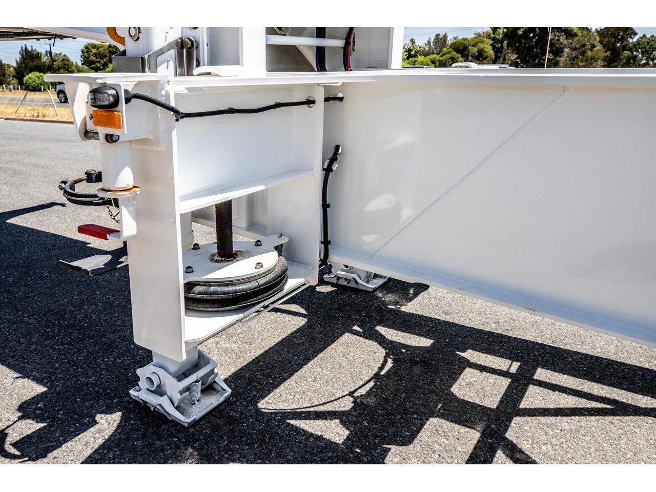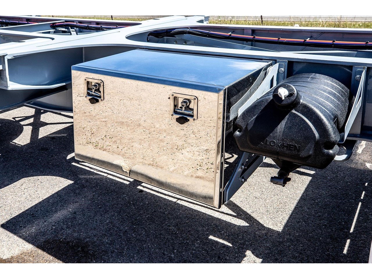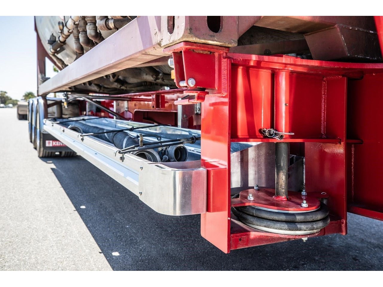 To suit specific industries and unloading environments, Jamieson Skeletal Trailers can be configured with a wide range of optional equipment. Options commonly include ISO/container airbag tilt (typically 1°) to assist gravity unloading, ISO pipework to match fixed unloading infrastructure, and full tipping capability for bulk or liquid container applications. Operators can also specify tow couplings for road train or b-double use, lockable stainless steel toolboxes for hoses and fittings, and a choice of spring or airbag suspension depending on duty cycle, terrain and payload requirements.