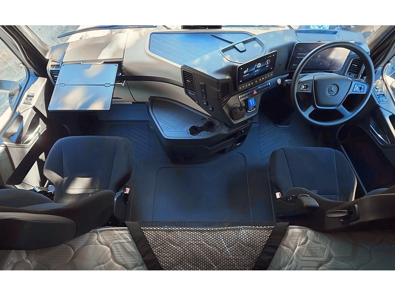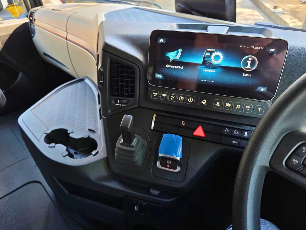 Cabin: Spacious, ergonomic sleeper cab with climate control, air suspension seat, and cutting-edge infotainment system.