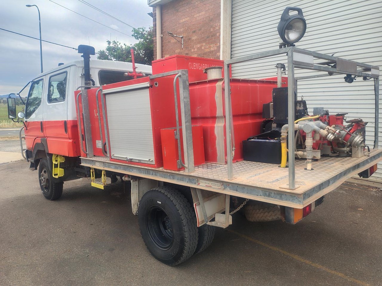1999 Mitsubishi Canter 500/600 4x4 Crew Cab FireTruck, direct from government, fully equipped fire truck, galvanised water tank, diesel pump with Gaam pumpset with foam and crew protection. Air conditioned, currently six seats with a 7th seat available. Also available as a tray top truck. Also available 2007 Mitsubishi Canter 4x4 Firetruck, and a 2003 Canter 4x4 Dualcab Firetruck, both low km and factory turbo