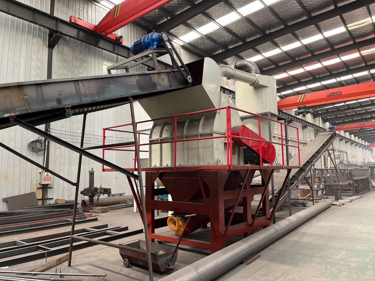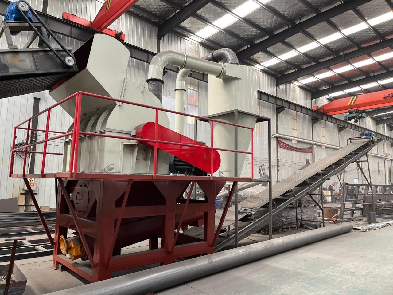 - 8m long x 800mm wide infeed conveyor w/7.5kW motor