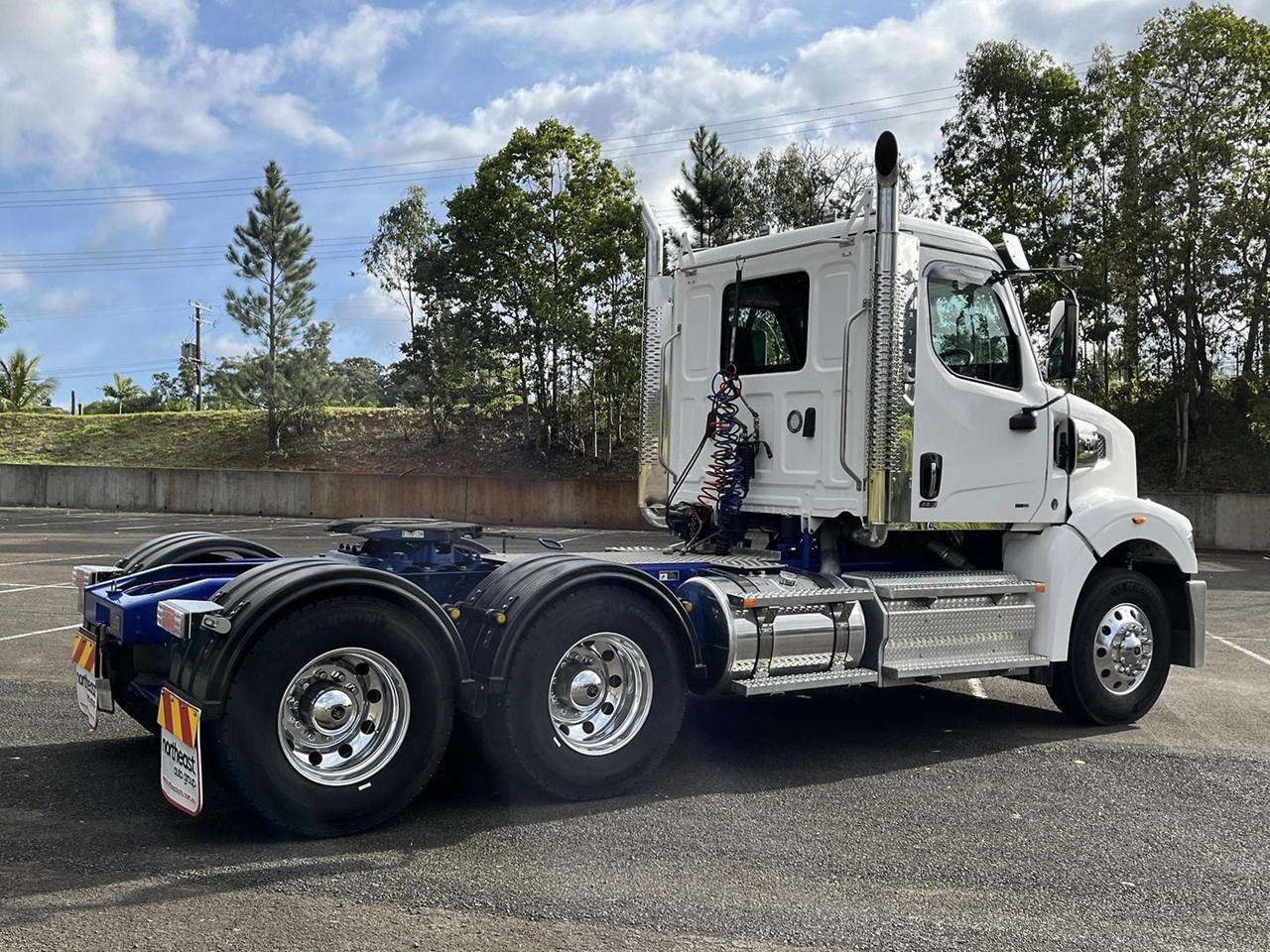 Ex Demonstrator 48X Day cab prime mover, Detroit DD16 600hp withe 12 DT12 12 speed transmission, Meritor RT46-160GP diffs with cross locks, Jost grease turntable, UHF radio.